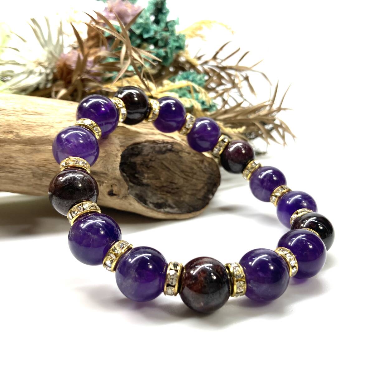 > ガーネット&アメジスト パワーストーン ブレスレット 天然石ブレス (ゴールド) 12mm 金運 仕事運 メンズ・レディース 男性 女性