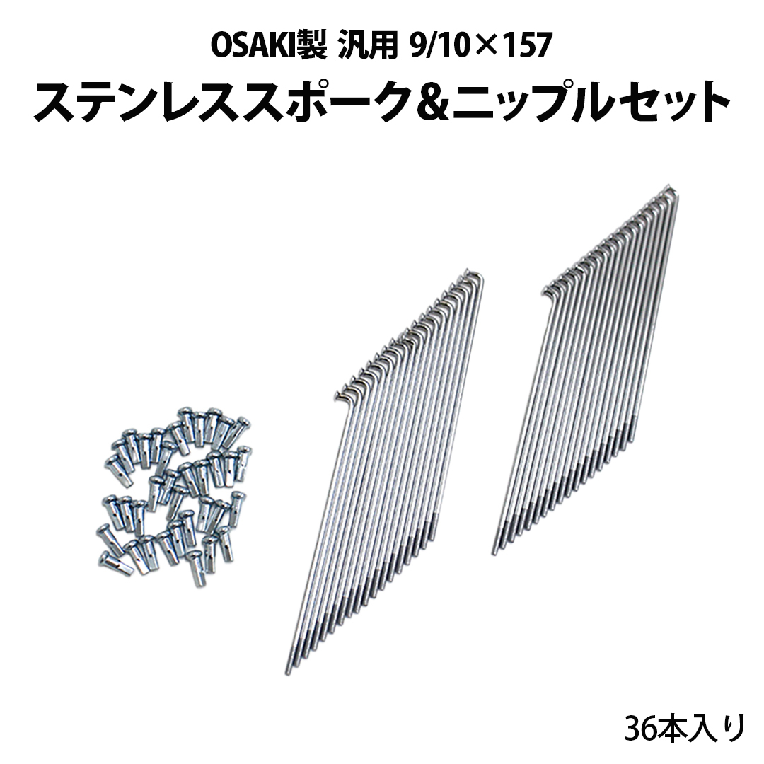 > スポーク & ニップル セット 36本 入り OSAKI 製 汎用 9 / 10 × 157 リム RCB ホイール リム 対応