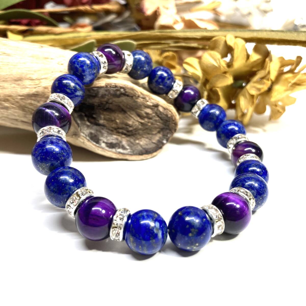 > ラピスラズリ&パープル タイガーアイ パワーストーン ブレスレット 天然石ブレス (シルバー) 10mm メンズ・レディース 金運 ☆