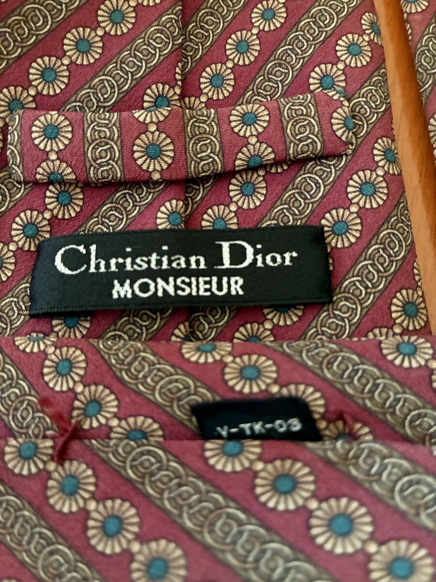 - 正規品ChristianDior MOSIEURクリスチャンディオールネクタイ絹シルク100%赤系ボルドー花柄総柄♪(F)