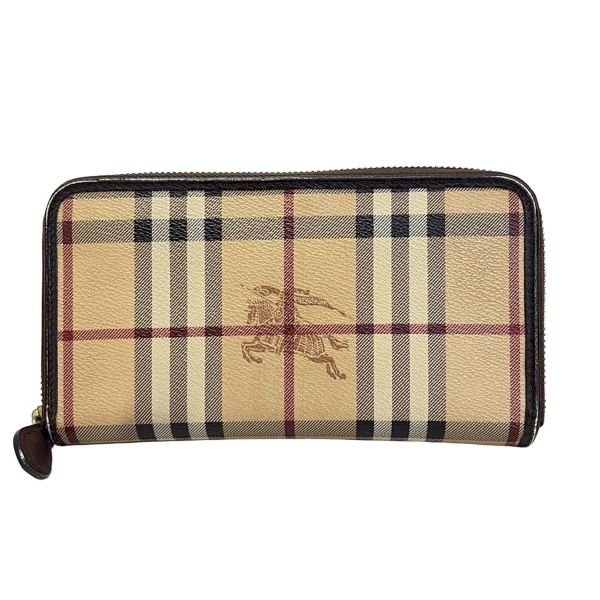 > バーバリー BURBERRY/Burberry 長財布 - レザー ベージュ×ダークブラウン×マルチ チェック柄/ラウンドファスナー 財布