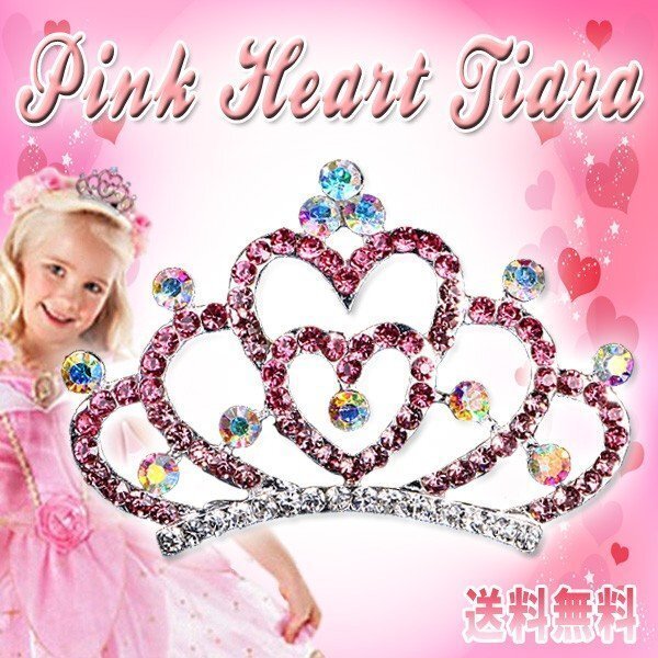 - 送料無料 ピンク ハート ティアラ / お姫様 ヘアアクセサリー ハロウィン Pink Dress コスプレ 発表会 結婚式 子供用 姫 ドレス