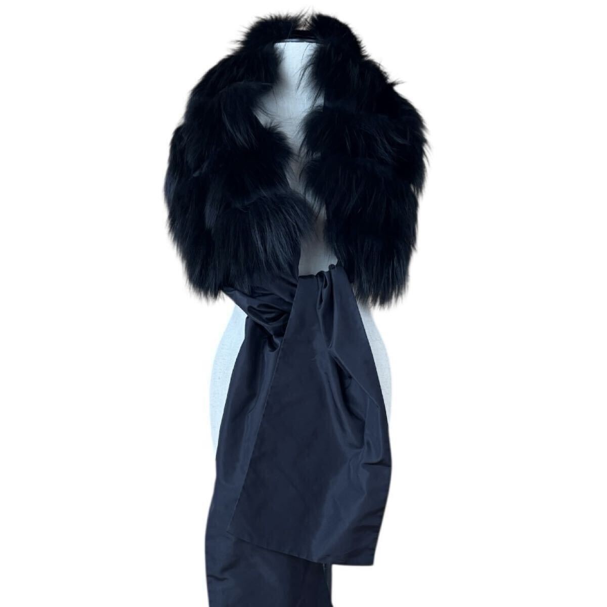 > サルヴァトーレフェラガモ Salvatore Ferragamoイタリア製 シルク フォックス ストール ブラック 黒 ファー ショール 服飾小物