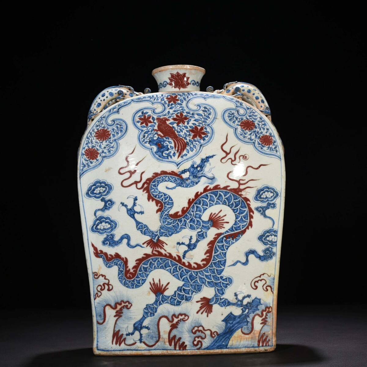 - 元時代 青花釉里紅雲龍紋 四系扁瓶 ・古陶磁器 ・珍品旧蔵・古賞物・時代物