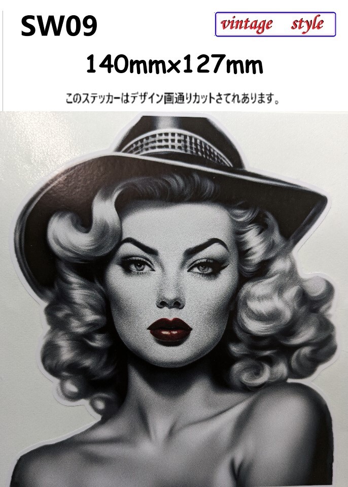 - SW09-05 特価~15%OFF レトロ モノクロ セクシー&クール 顔上半身 ヴィンテージスタイル ピンナップガール セクシーステッカー ギター