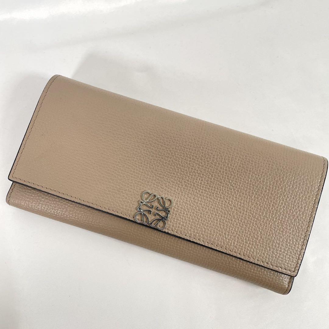 - 美品 LOEWE ロエベ 長財布 ロングウォレット アナグラム フラップ レザー 本革 グレージュ系