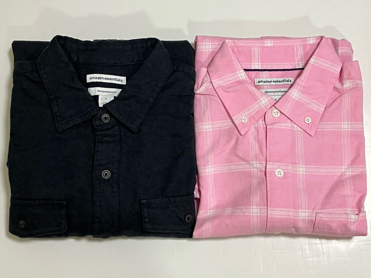- 未使用 タグ付 amazon essentials 2着 長袖シャツ スリム レギュラー M 〜 L 相当 アマゾン プライベートブランド PB 長袖 シャツ