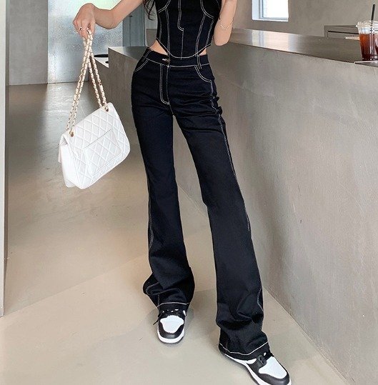 - Gパン ジーパン ジーンズ 切り替え スリム 着痩せ デニム 【大きいサイズあり】 2XL ブラック