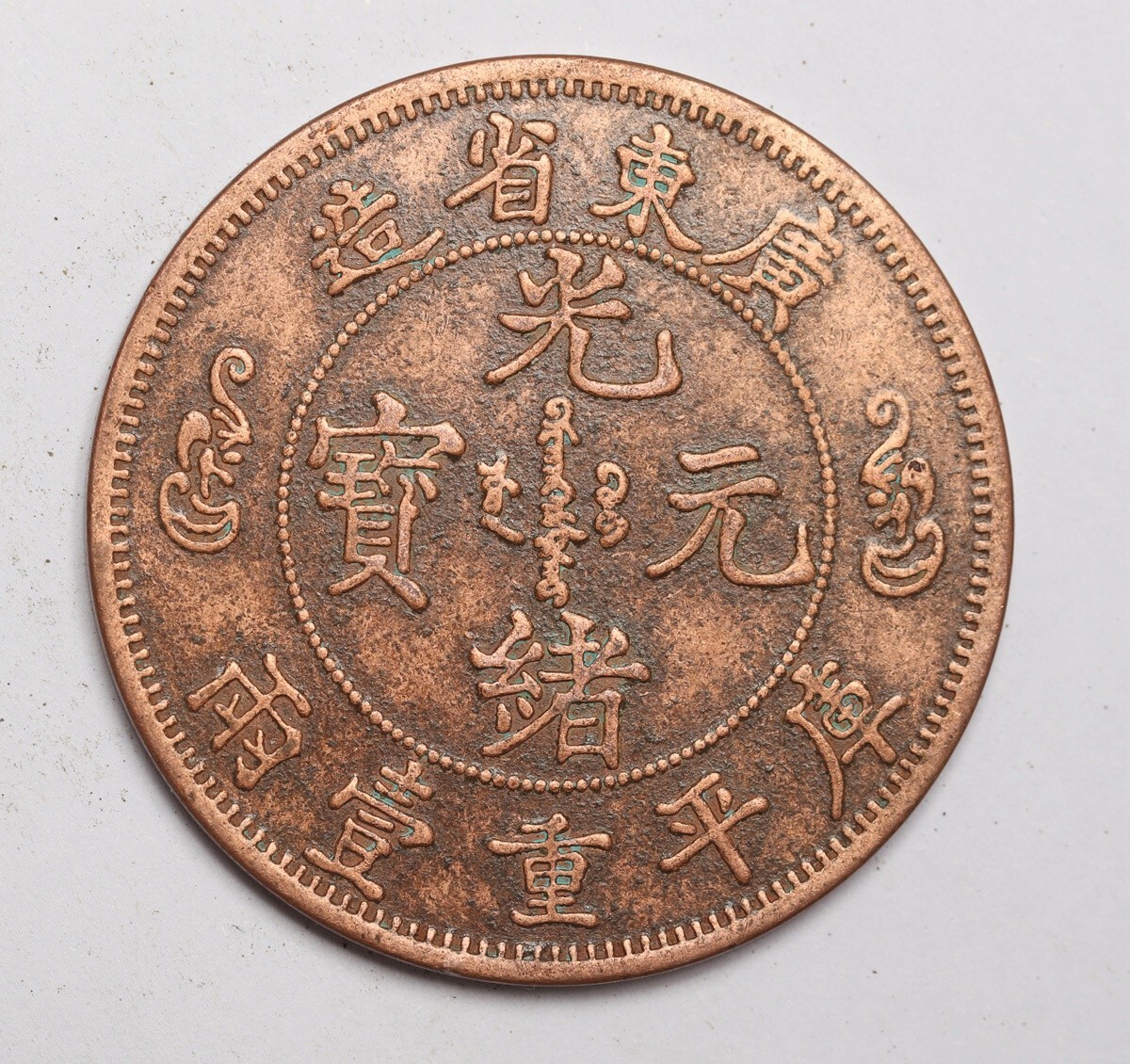 - 旧家蔵出し 中国古錢 廣東省造 光緒元寶 庫平重壹兩 銀模銅鑄 樣幣 銅貨 銅元 古美術品 収集家 34.38g 45.2mm