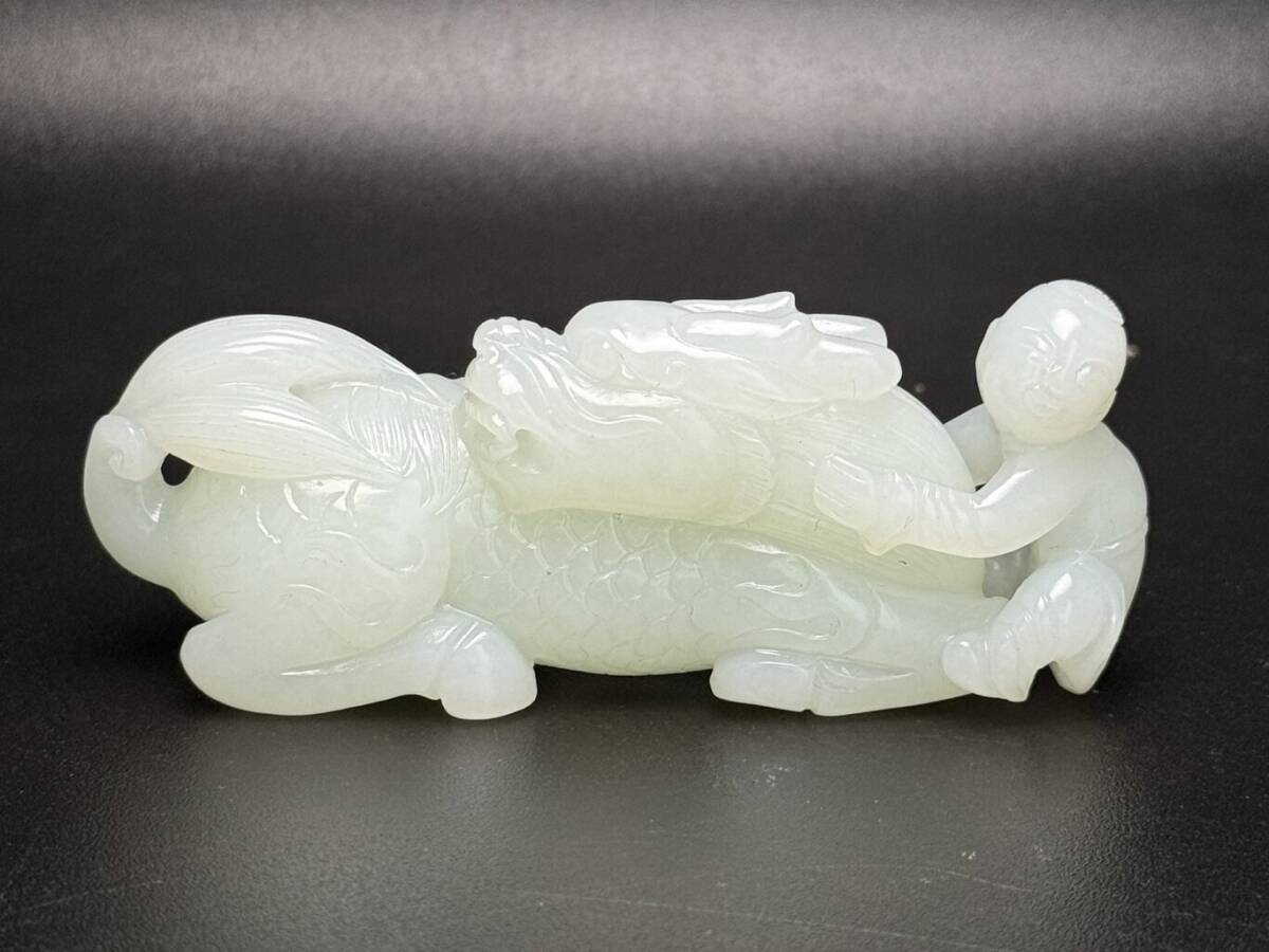 - ▽鴻▽ 清朝時代 和田玉 白玉彫 麒麟送子置物 時代物 中国古美術 骨董品