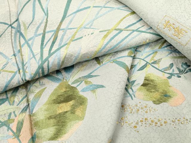 - 平和屋着物▼中国三大刺繍 蘇州刺繍 総刺繍 訪問着 秋草 金糸 正絹 逸品 未使用 DAAX9121fe