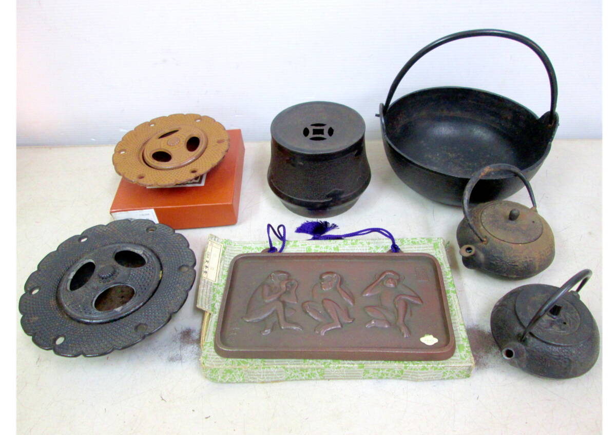 - 《510099》南部鉄器 / 急須 茶こぼし 鍋 灰皿 三猿【7点】岩鋳 他 岩手 盛岡 伝統工芸品