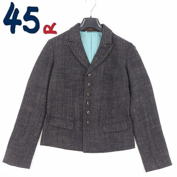 - 【HA793】美品◆45rpm フォーティーファイブ ヘリンボーン柄 ストレッチ ウール ツイード ジャケット ネイビー×ベージュ 3