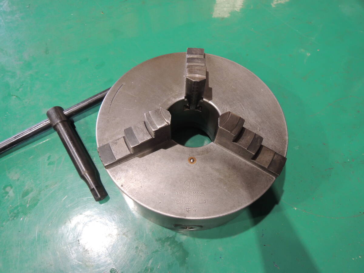 > SOUL 3爪スクロールチャック #9 外径約230㎜ ハンドル付 帝国チャック 旋盤工具 中古 工具 #964