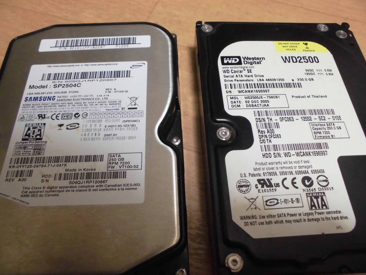 > Samsung SP2504C 250GB + Western Digital WD2500 250GB S-ATA HDD 計2台