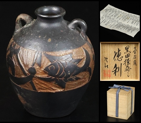 - 【 金城次郎 】秀逸作 壷屋焼 黒田掻落し徳利 人間国宝 共箱 保証