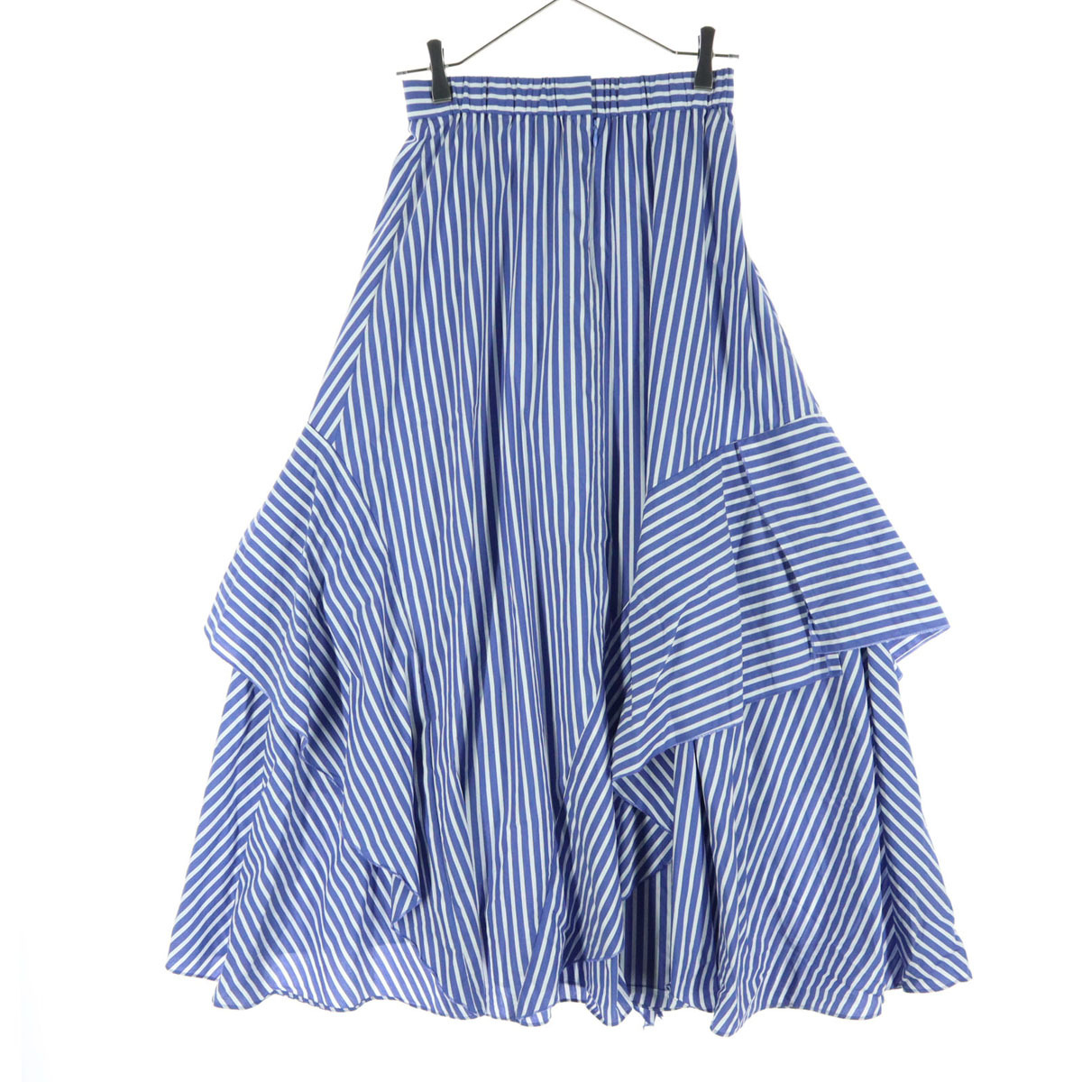 美品 PLST プラステ ボーダー柄 ロング丈 スカート S ブルー レディース拍卖