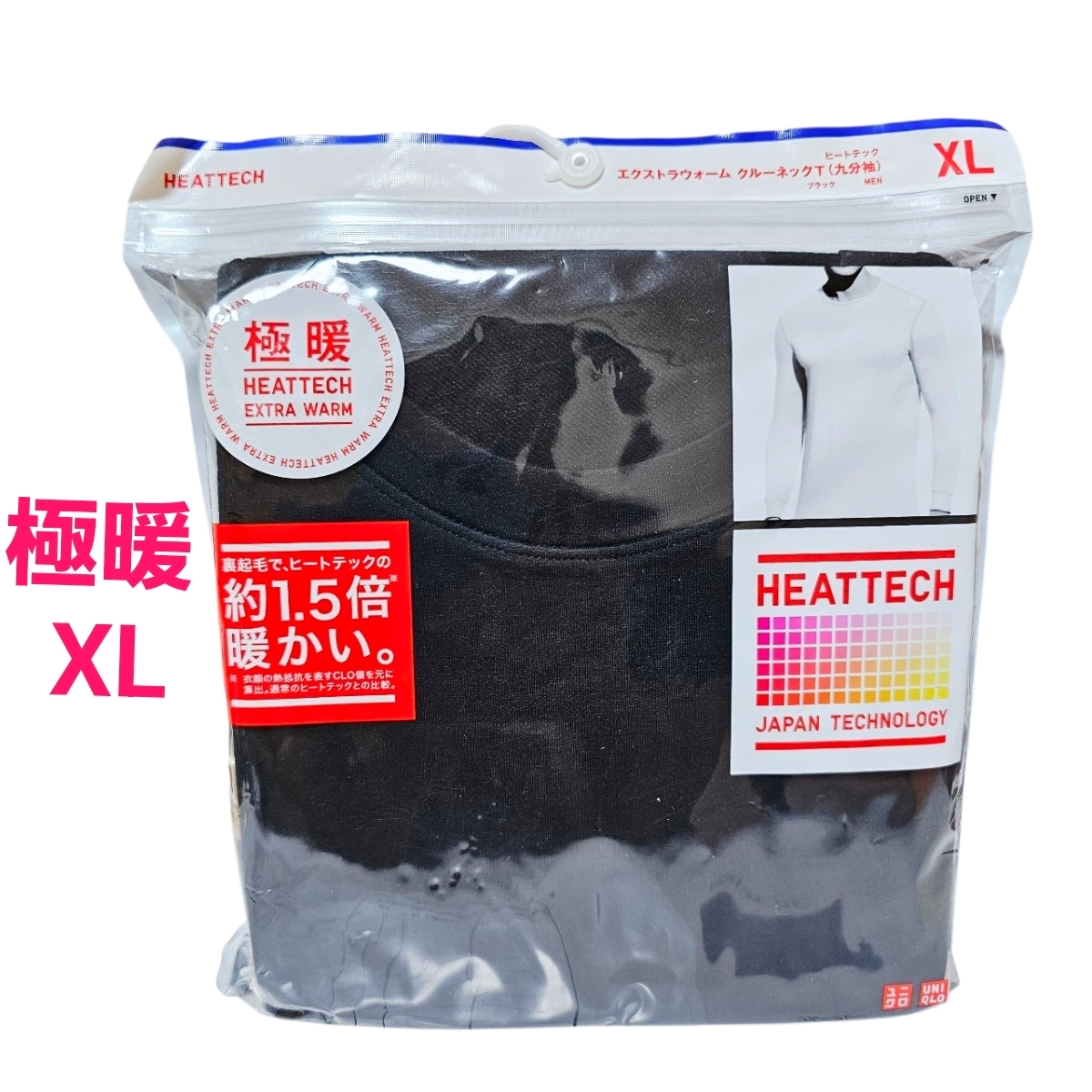 - 新品 ユニクロ 極暖 ヒートテック クルーネック XL 9分袖 メンズ ブラック Y86