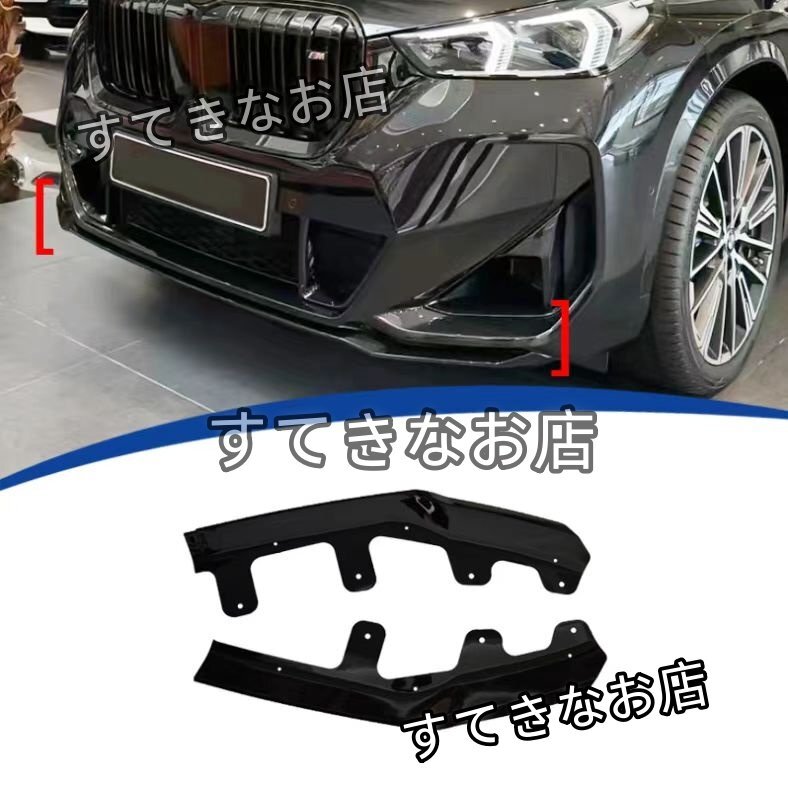 - 美品カー用品 外装 BMW X1 U11 2023-2024用 MPスタイル フロントリップスポイラー 2分割タイプ 前期スポーツ用 ABS製 黒/水転写カーボン調