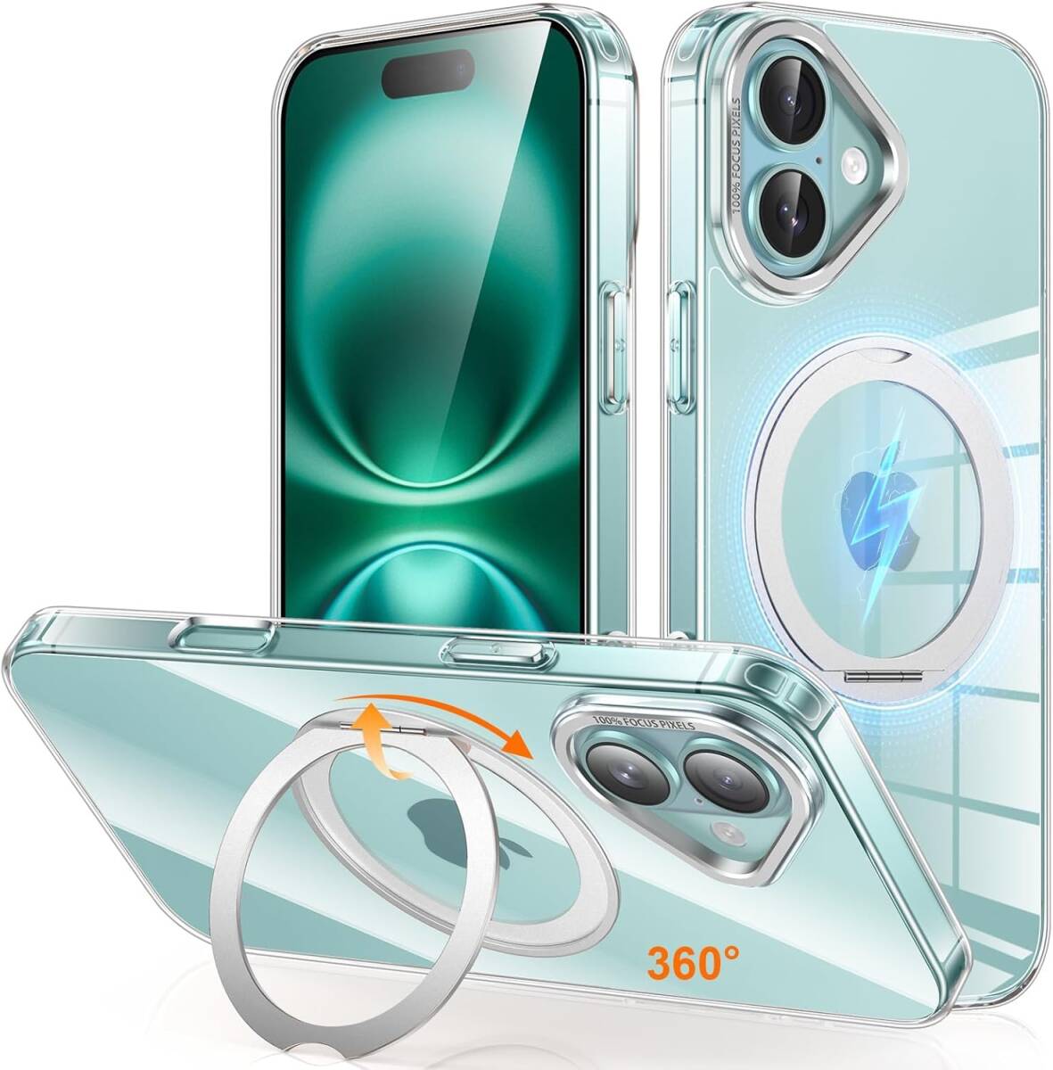 > iPhone 16 用 ケース Magsafe対応 ワイヤレス充電 360°回転スタンド 縦横両対応