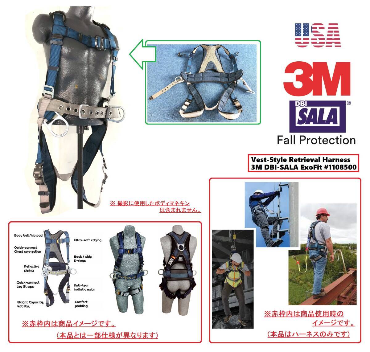 > 【USA】DBI-SALA フルボディハーネス ExoFit US-Sサイズ 安全ハーネス フルハーネス安全帯 墜落防止 高所作業 米軍放出品(100)HJ22CK#25