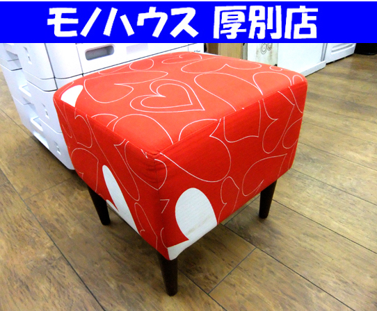 イス スツール シンプル ハート柄 40cm×40cm レッド系 中古 ファブリックスツール 札幌市厚別区 厚別店