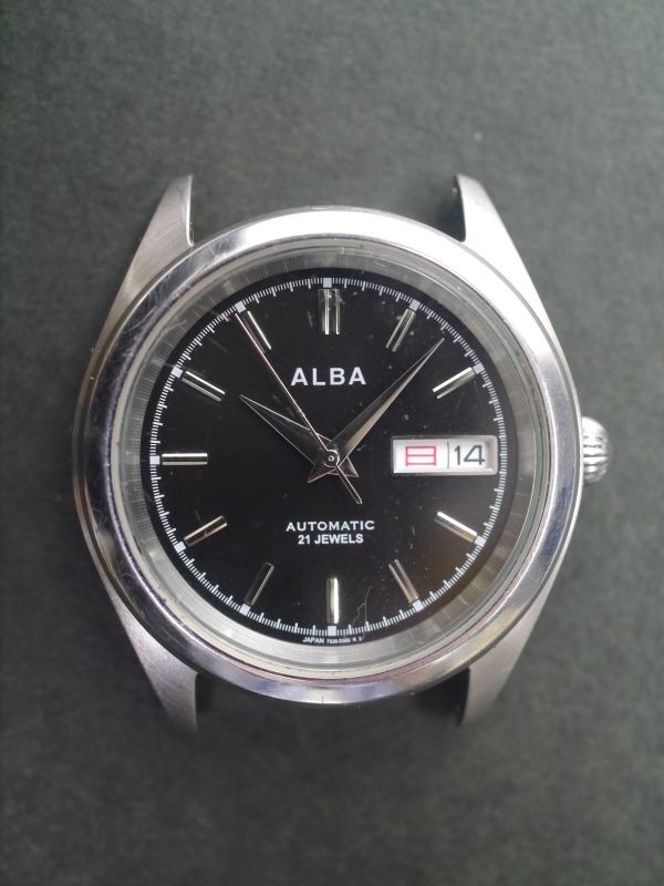 > セイコー SEIKO アルバ ALBA 21石 自動巻き 3針 デイデイト 裏スケ 7S26-D002 男性用 メンズ 腕時計 日本製 ac74 稼働品