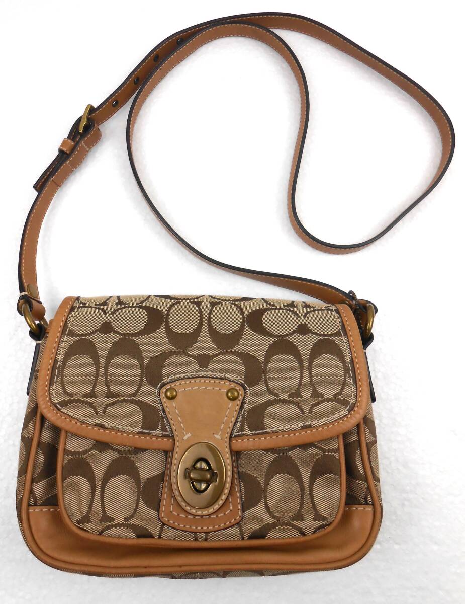 > ジャンク品 COACH コーチ シグネチャー ショルダーバッグ キャンバス 10566 ターンロック