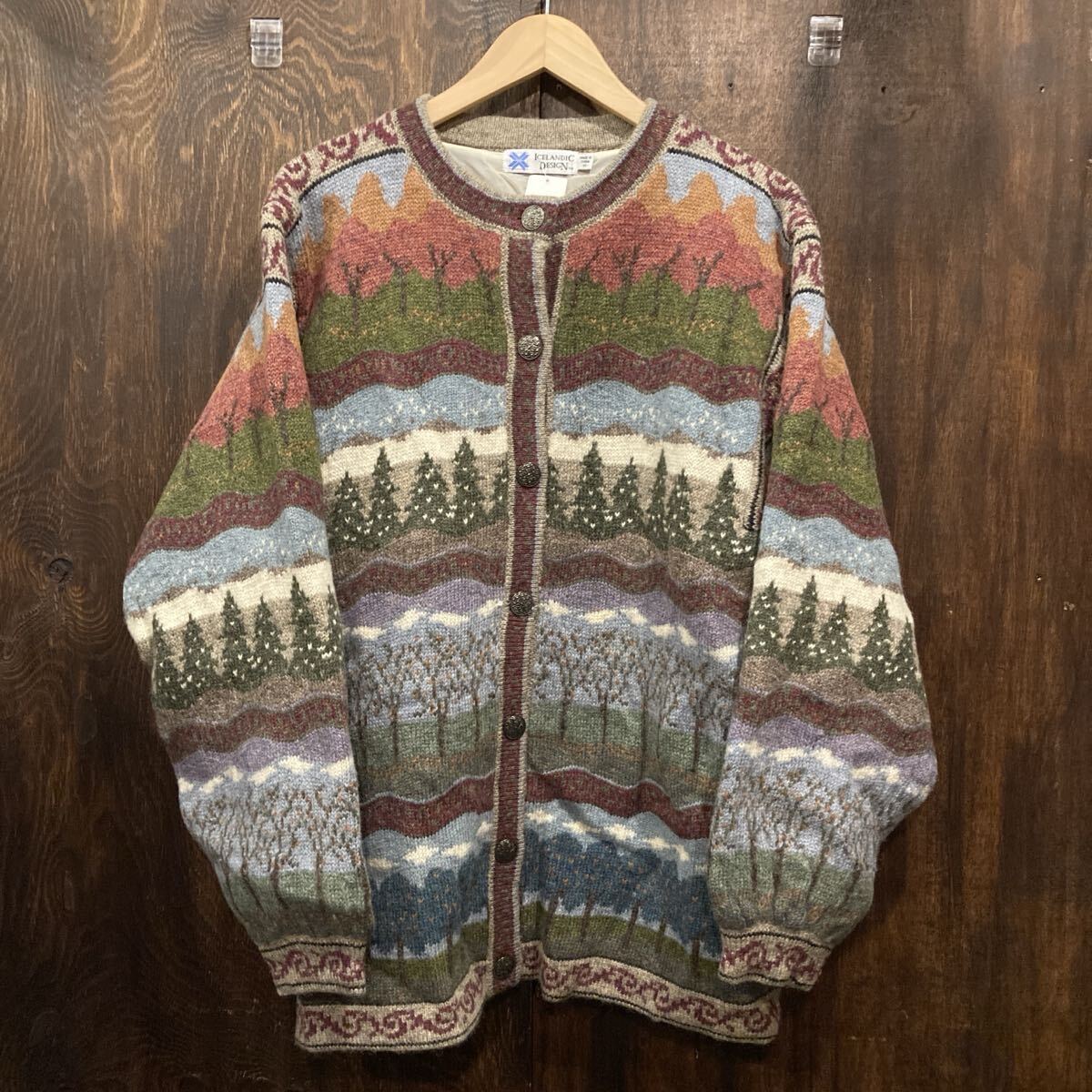 - Icelandic Design クルーネック カーディガン 総柄 ウールニット Mサイズ 総柄ニット