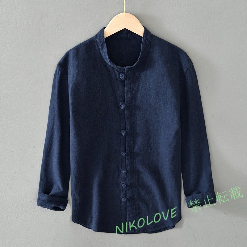 - ☆新品人気 長袖シャツ メンズ リネンシャツ 無地 立ち襟 レトロ カーディガン 春夏 綿麻 個性 薄手 ジャケット カジュアル M~3XL