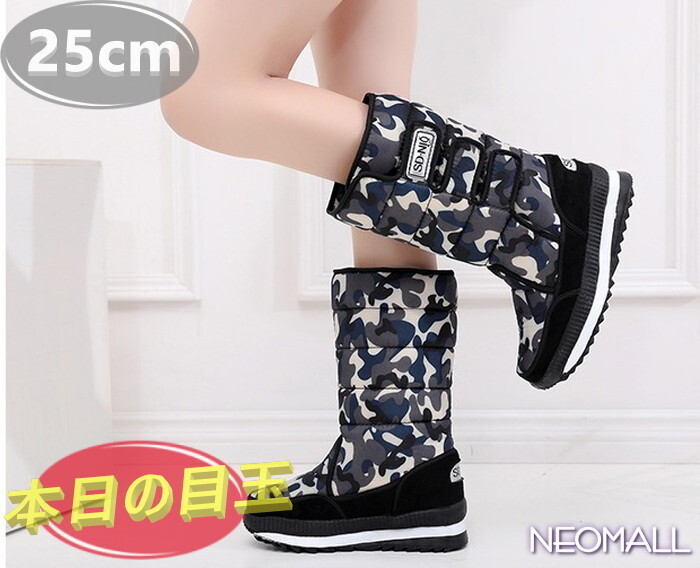 - レディース スノーシューズ 【867】 25.0cm 迷彩グレー ムートンブーツ スニーカー ウィンターブーツ 裏起毛 防水 防寒 防滑 冬用靴 綿靴