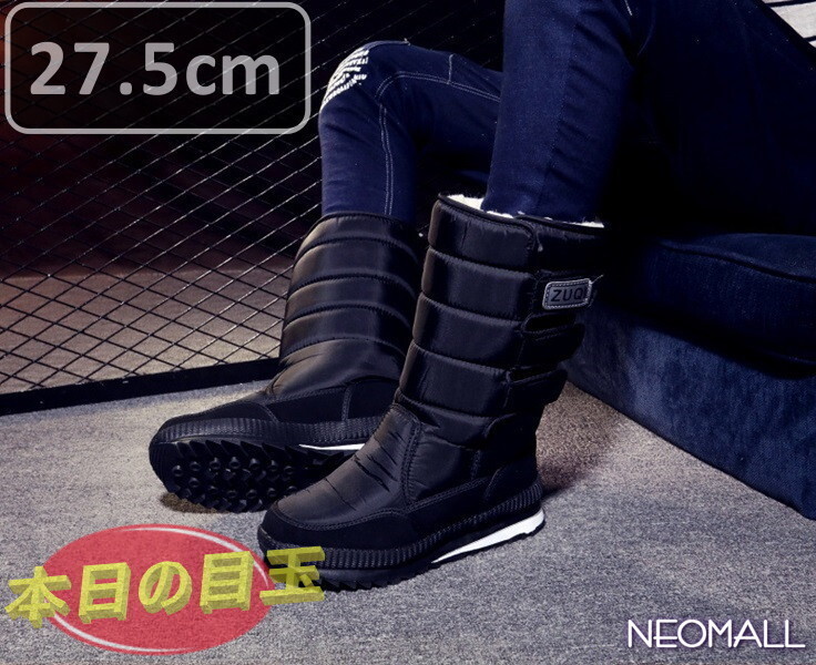 > メンズ スノーシューズ 【866】 27.5cm ブラック ムートンブーツ スニーカー ウィンターブーツ 裏起毛 防水 防寒 防滑 冬用靴 綿靴