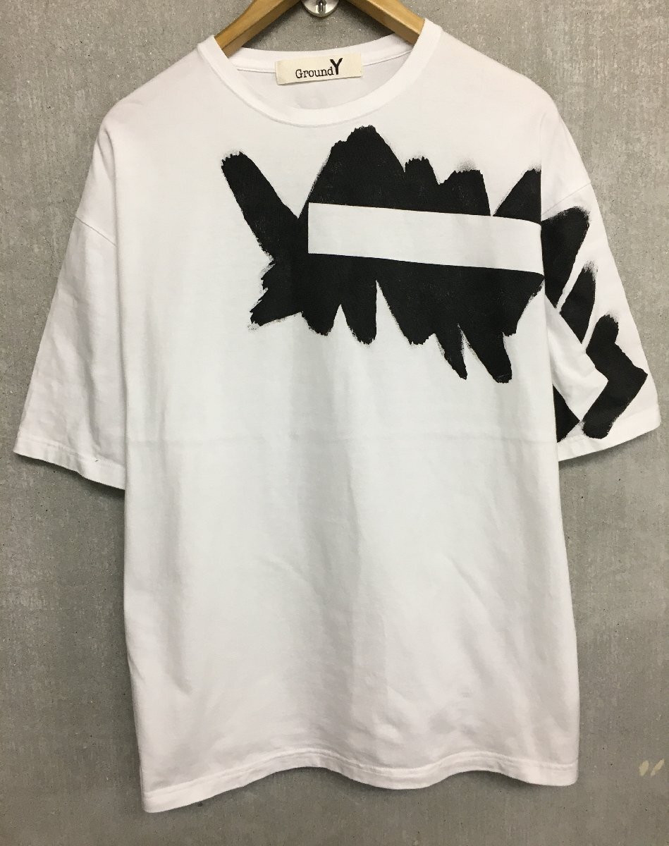 - ◆ヨウジヤマモト Ground-Y グラウンドワイ 落書き アート デザイン クルーネック Tシャツ 白 サイズ4 美