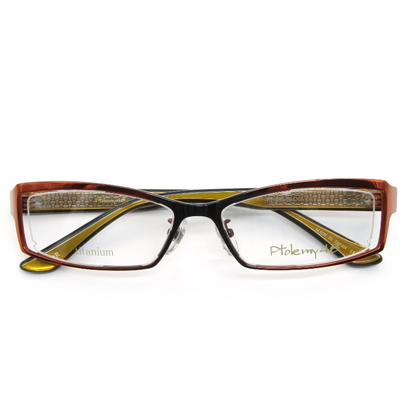 - 美品 Ptolemy48 トレミー48 メガネフレーム PT-090 Titanium 日本製 スクエア ばね丁番 コンビ OR オレンジ/ブラック 61003926