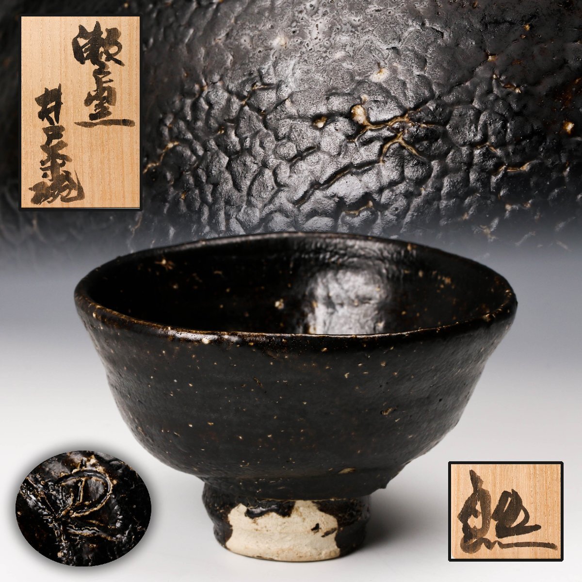 【佳香】鈴木五郎 瀬戸黒井戸茶碗 共箱 茶道具 本物保証