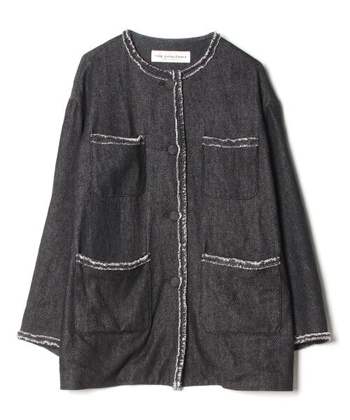- 「THE SHINZONE」 ストライプ柄ノーカラージャケット 36 ブラック レディース
