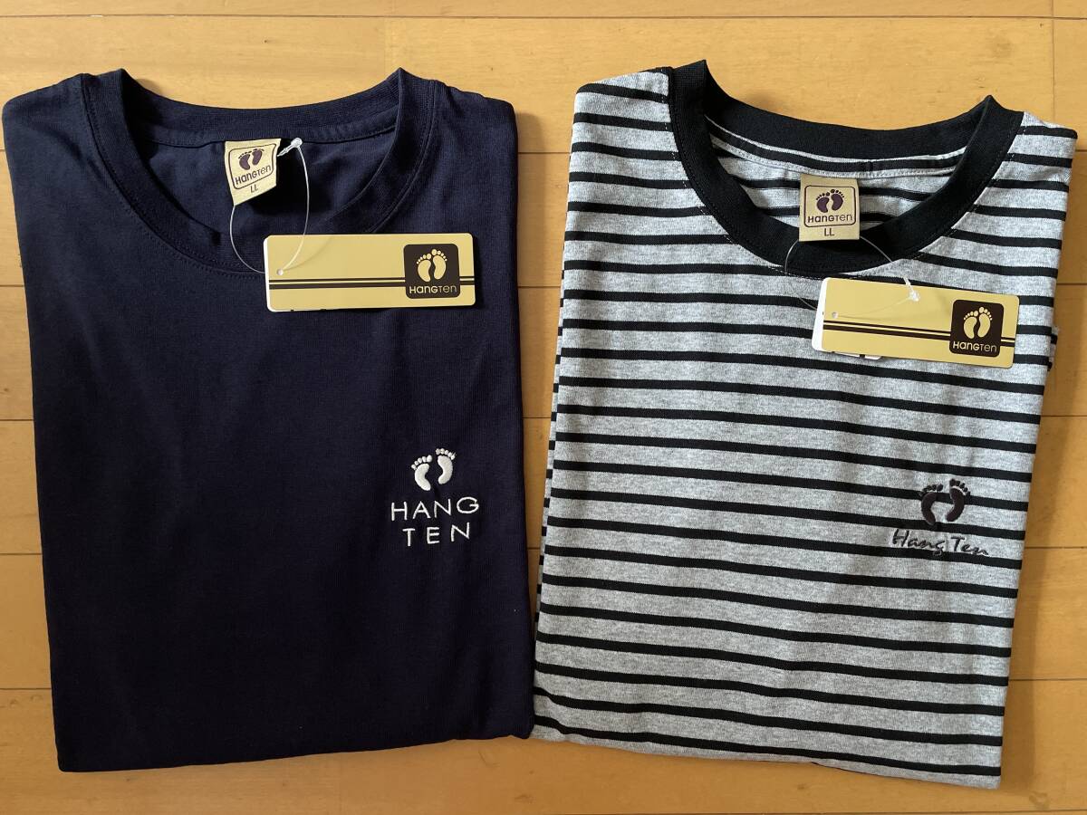 - 新品未使用 送料込み LL 2枚 HANGTEN ハンテン 長袖Tシャツ 刺繍 ネイビー ボーダー グレー ロンT メンズ ストライプ 即決