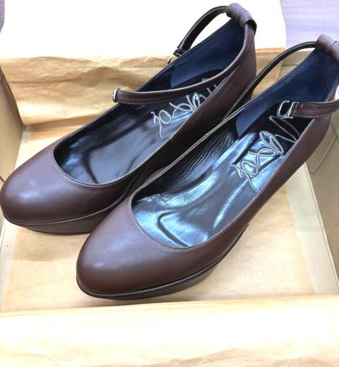 - ▼T104174:レディース パンプス ストラップ付 ウエッジソール Lサイズ ブラウン系 中古