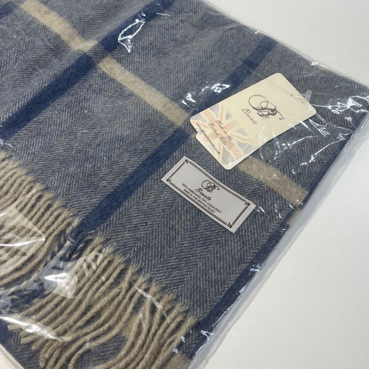 - 未使用品 未開封 BRONTE ブロンテ ラムウール100% ストール マフラー チェック リーズブルー MADE IN UK 英国製