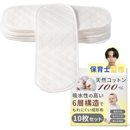 - 布おむつ 赤ちゃん 布オムツ 10枚セット「天然コットン100%x吸水性の高い6層構造でもれにくい成形布」【Kammys】
