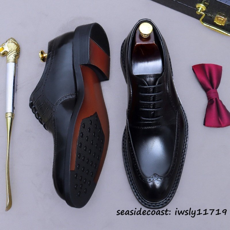 - 極美品◆ビジネスシューズ メンズ 本革 イギリス風 レザーシューズ 職人手作り 高級牛革 革靴 紳士靴 冠婚葬祭 フォーマル ブラック 24.5cm