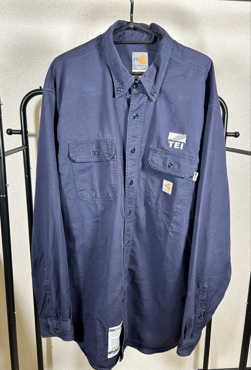 - Carhartt FR 防炎ジャケット XL アメリカ製 ワークシャツ カーハート ネイビー 長袖シャツ