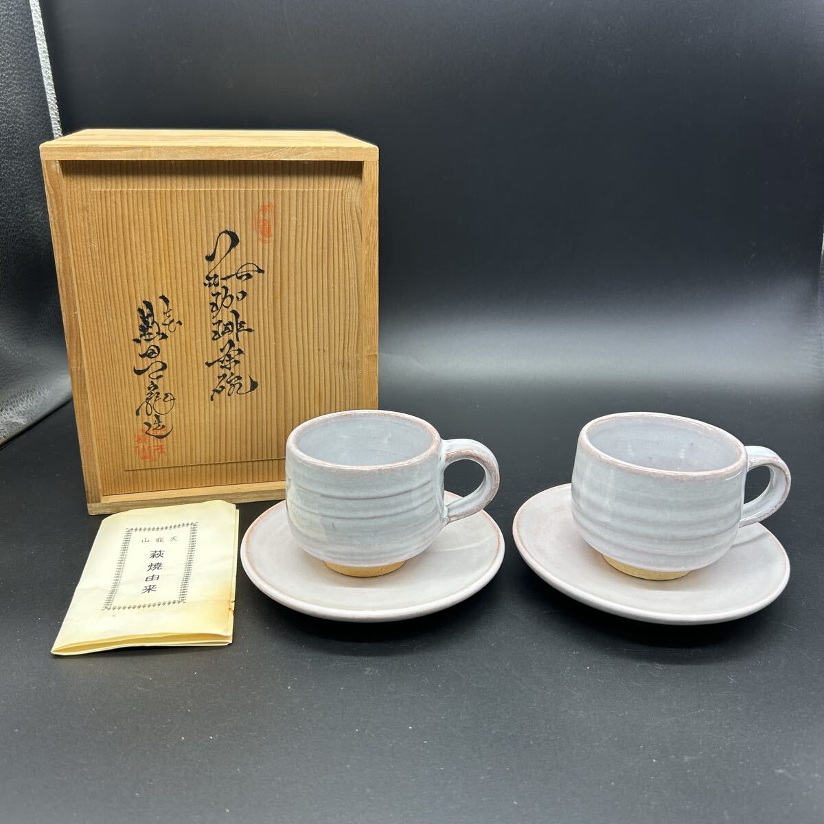 - 萩焼 珈琲茶碗 天寵山 兼田山左エ門 カップ コーヒーカップ ソーサー 陶器 オ21