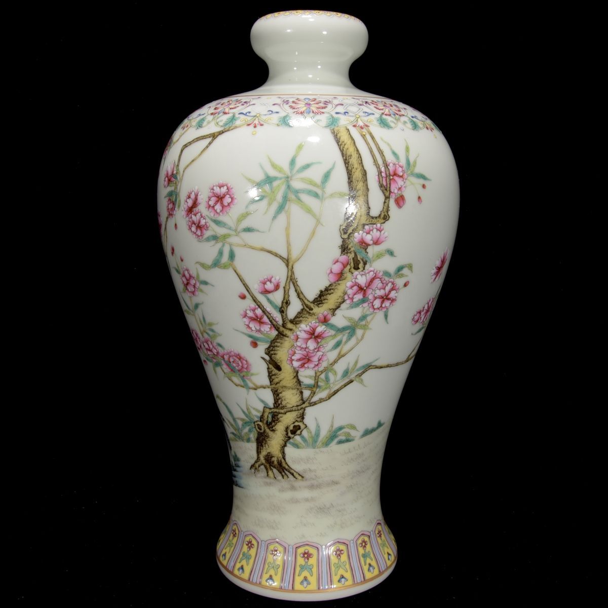 - 【永】清時代 大清雍正年製 琺瑯彩 喜鵲登梅題詩瓶 古陶磁器 陶芸 皿 中国陶瓷器 唐瓷 置物擺件 古美術品 古賞物 収集 旧家蔵出 中国唐物