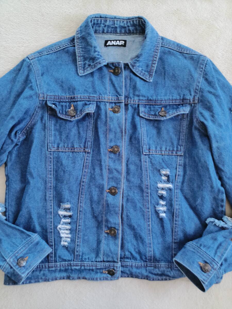 - ▼ANAP▼ダメージデニムジャケット▼ジージャン▼デニムジャンバー▼サイズフリー▼
