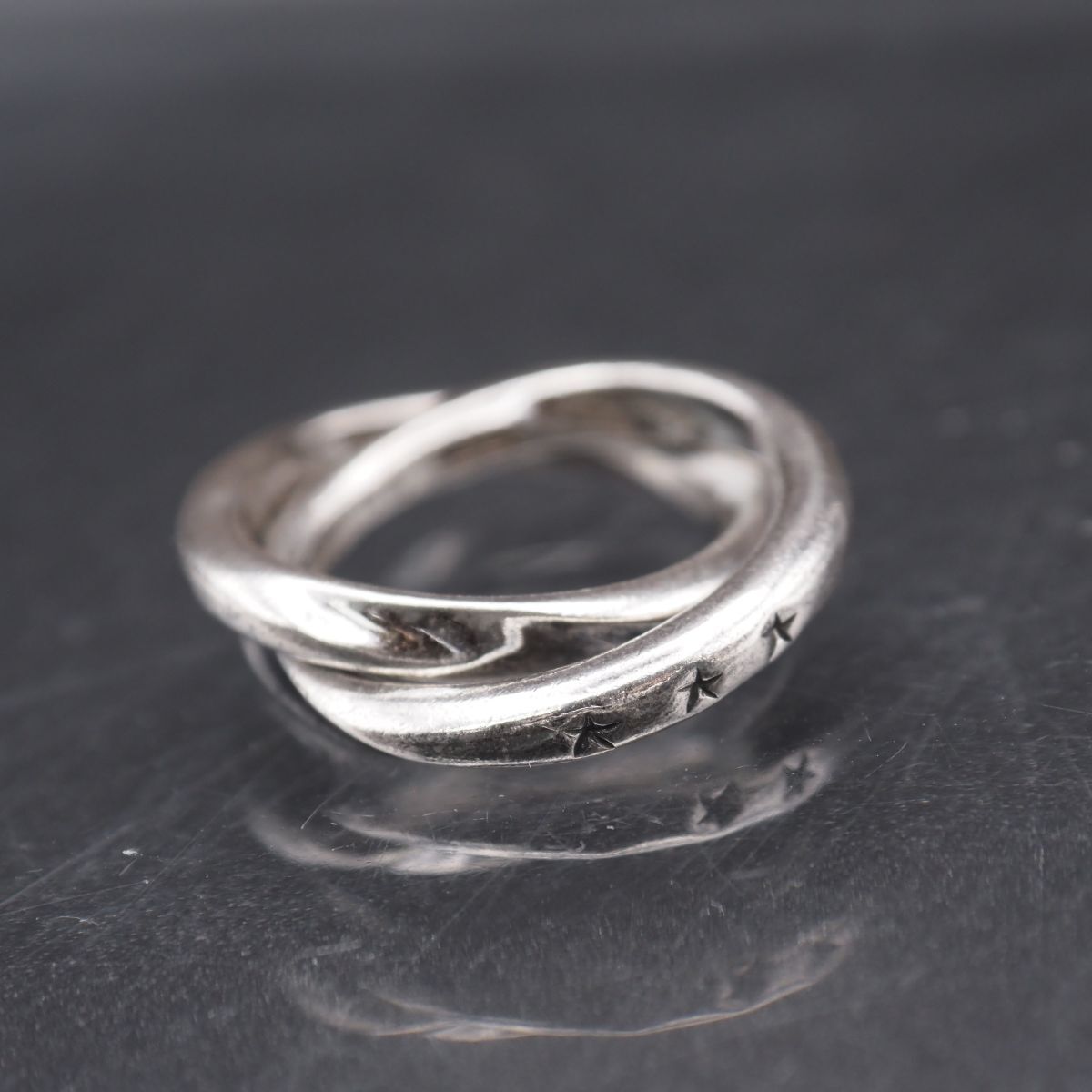 - H140 ノジェス NOJESS SILVER刻印 リング スター 2連 トリニティ デザイン シルバー 指輪 7号