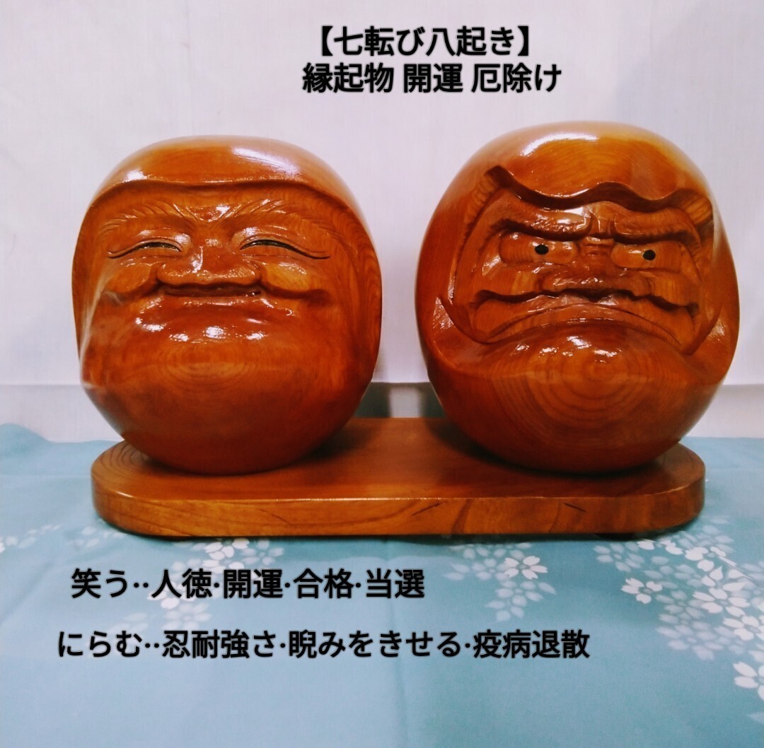 - g_t I277 木彫工芸 一刀彫 休風作 開運/厄除け達磨 七転八倒 縁起物 未使用保管品