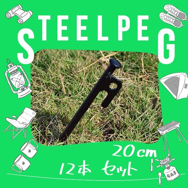 - 送料無料 スチールペグ スチール製 12本 20cm高強度 杭 引抜穴付きペグ テント タープ 設営 キャンプ DIY BBQ 野外フェス バーベキュー
