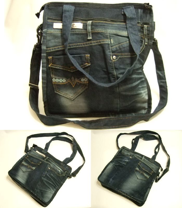 - 横浜最新 魅惑のデニム 手提げ&ショルダーツーウェイリメイクバッグ♪2連巾広チャック横巾33cm縦36cmマチ10cm底板付き 送料無料ξblξ ξ98