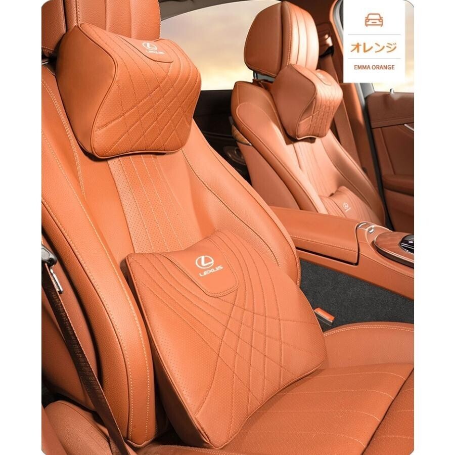 > レクサス LEXUS 車用記憶 クッション 首 ネック ナッパ 革 腰当て 腰クッション 1セット IS LS RX NX CT LC RC GS LX UX ES HS通気性低反発